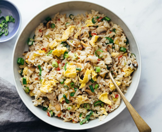 A dish of boiled or steamed rice that is stir-fried typically with soy sauce, beaten egg, chopped meat, and vegetables. Read More