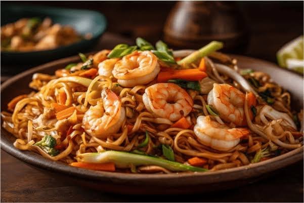 piping hot bowl of spicy noodles, Indo-Chinese style.